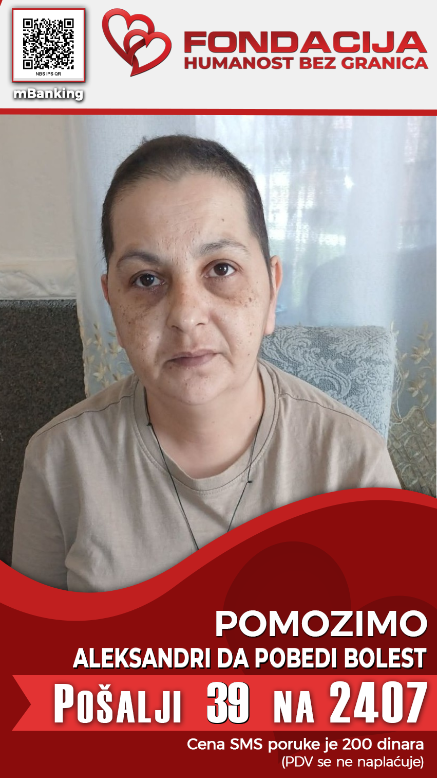 Aleksandra (1982.) već tri godine vodi tešku i iscrpljujuću borbu sa bolešću. Lečena je u Kliničkom centru u Nišu, gde joj je dijagnostikovan karcinom materice (C54), koji je, nažalost, metastazirao na pluća.