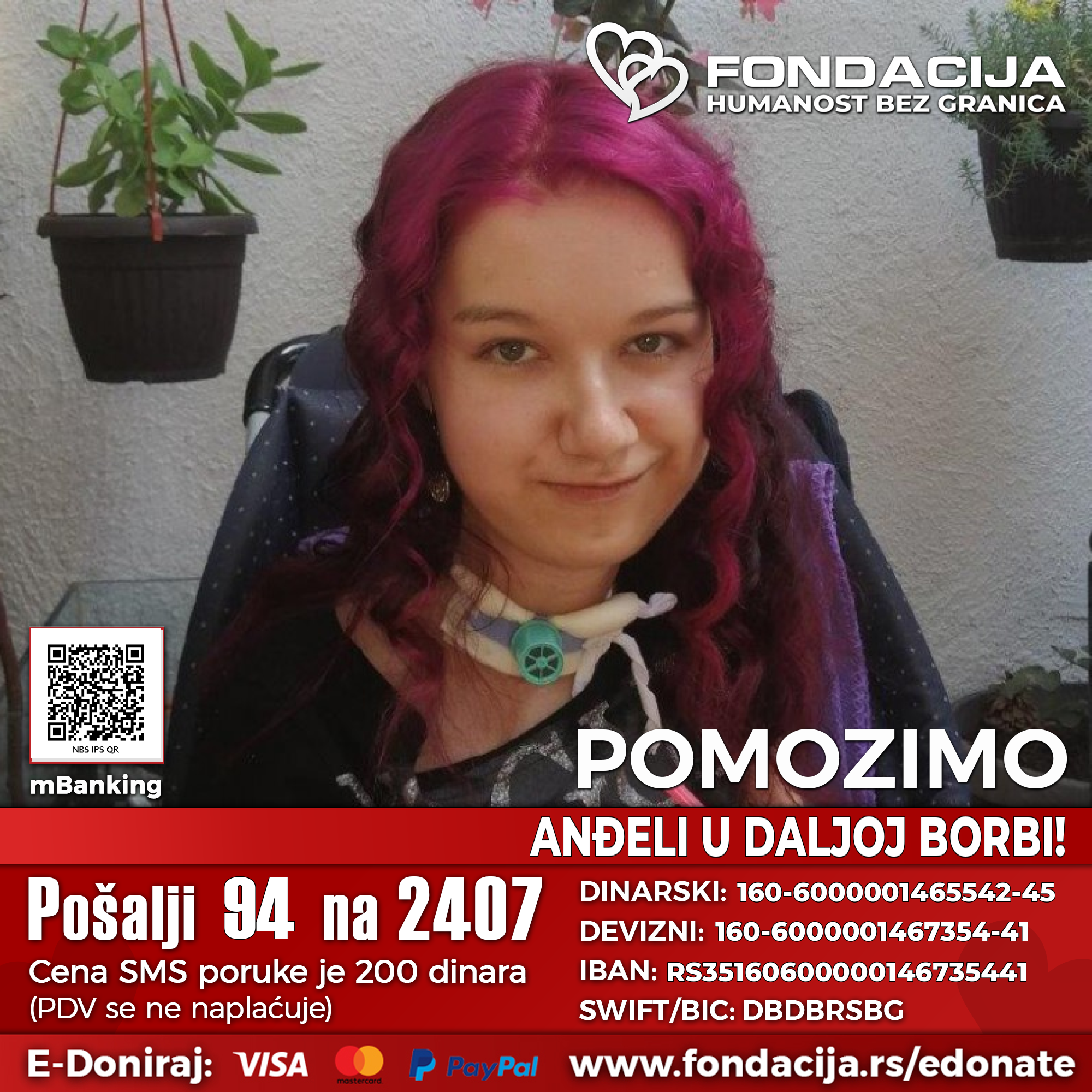 Roditelji se svakodnevno bore da joj obezbede sve što joj je potrebno – ali bez pomoći dobrih ljudi to nije moguće. Svaka podrška, Anđeli znači korak bliže ka zdravijem i dostojanstvenijem životu.