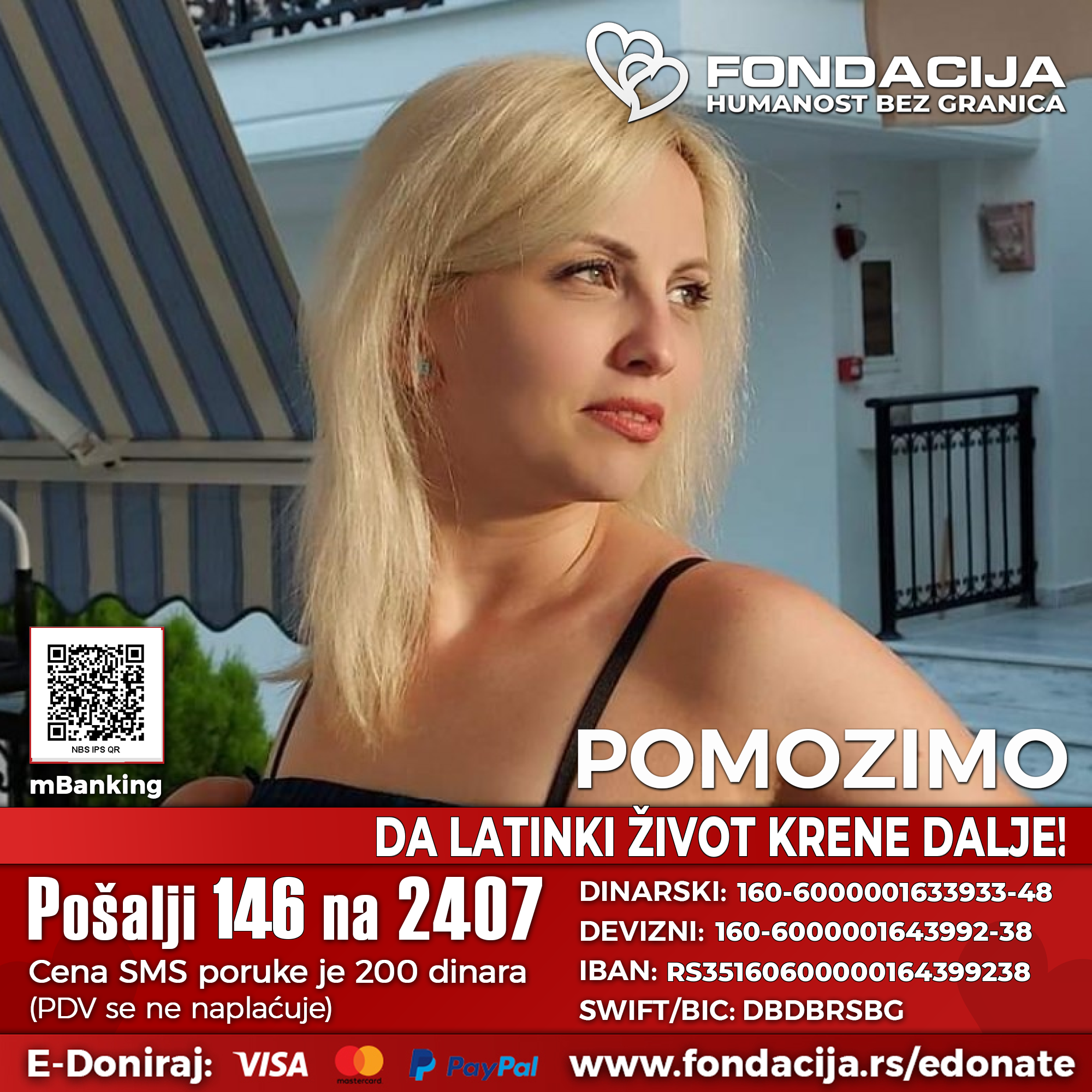 Ovim putem pozivamo sve ljude dobre volje da pomognu da Latinkin život krene dalje, tako što će poslati SMS sa brojem 146 na 2407. Uplate za pomoć u lečenju mogu se izvršiti i na dinarski i devizni račun korisnika i putem