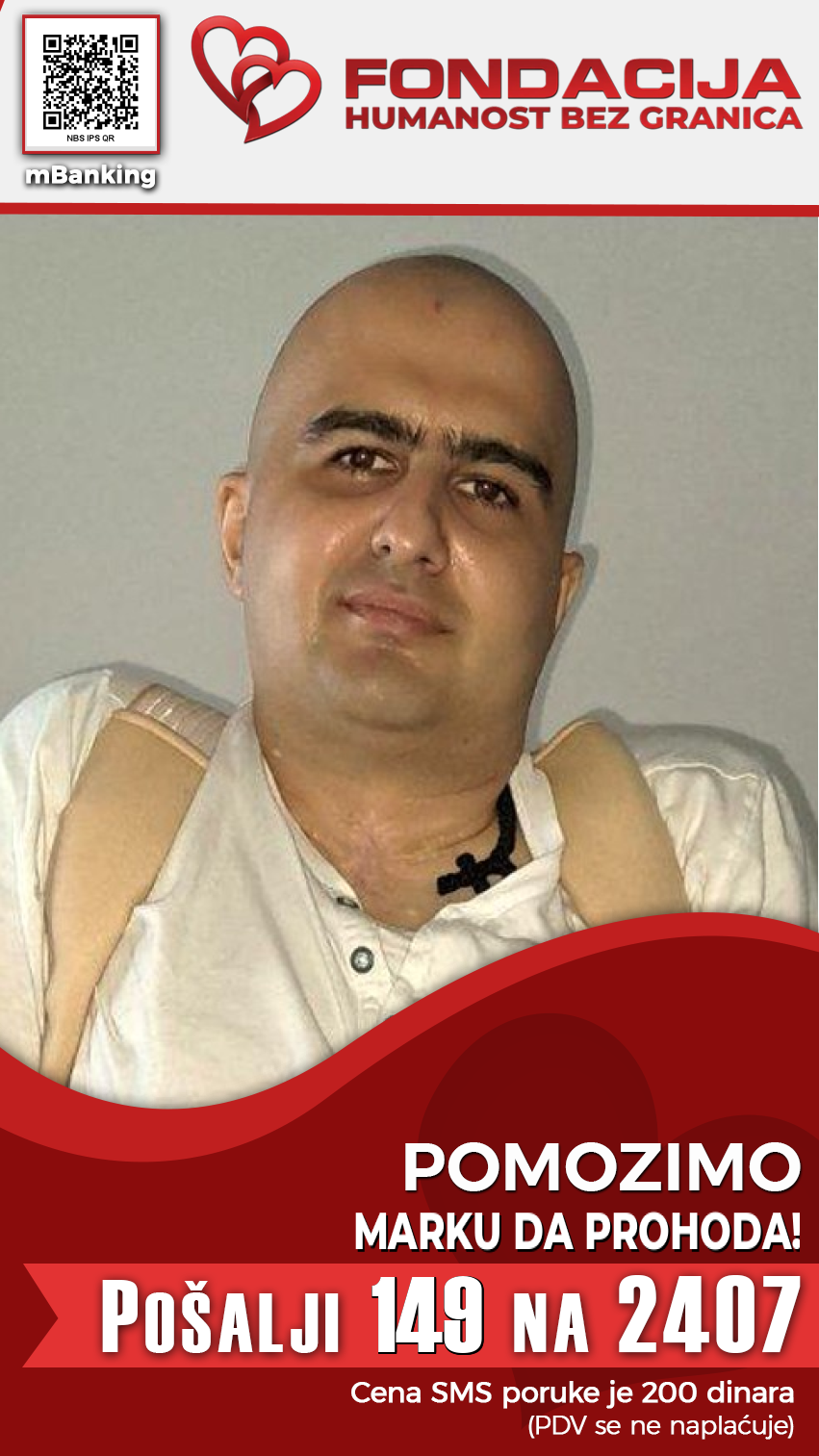 Marko je imao operaciju kičme, grla, saniran je dekubit. Nakon operacije, Marku su donji ekstremiteti oduzeti i ne pokreće ih. Nosi kateter i koristi pelene. Lekari Marku preporučuju operaciju i rehabilitaciju u Turskoj, kako bi bio u mogućnosti da se samostalno brine o sebi.