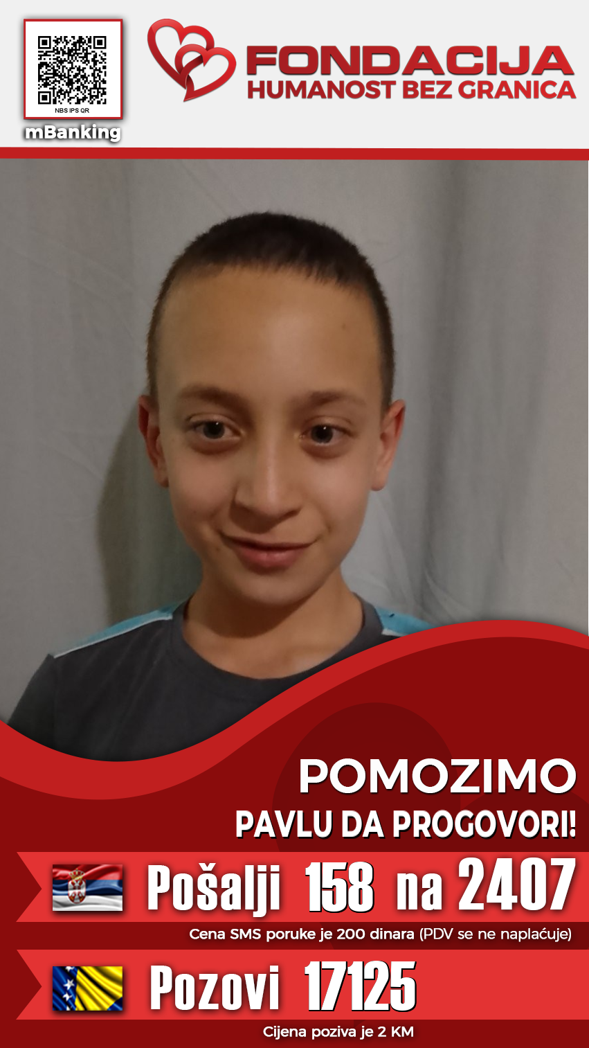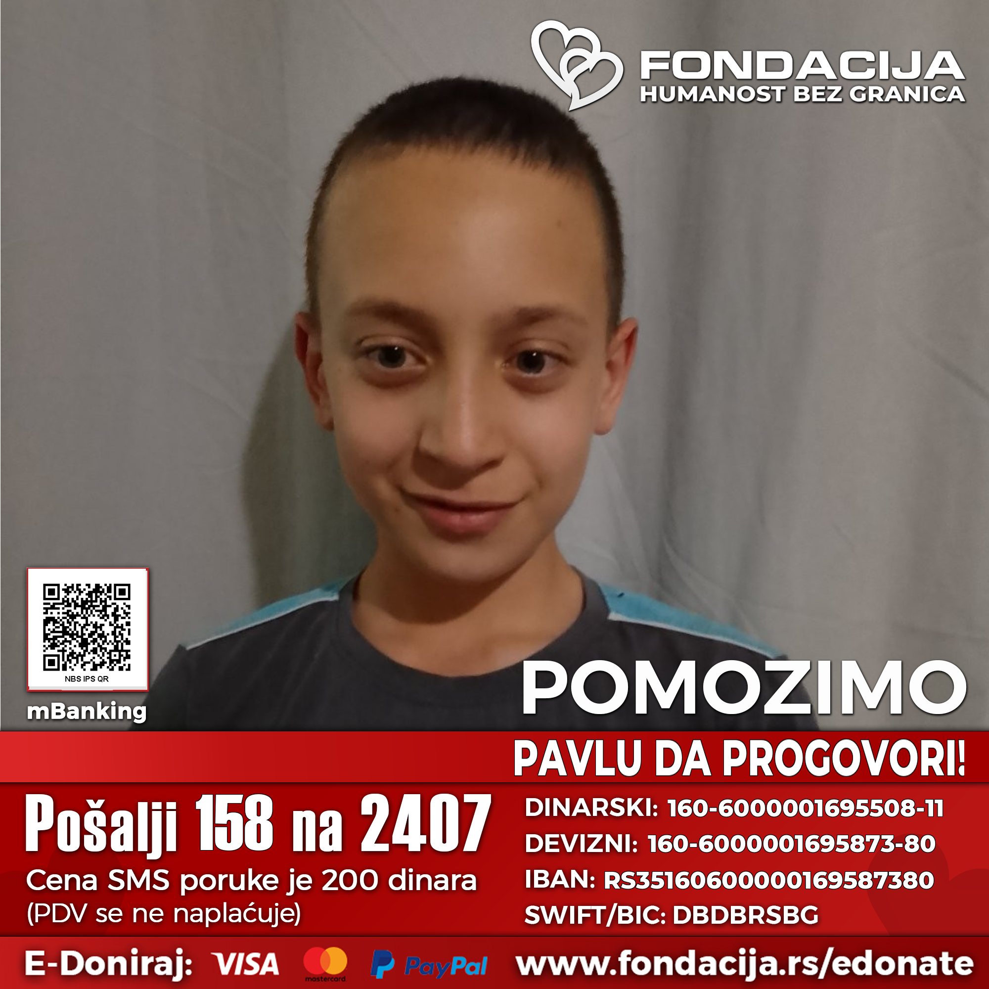 Pozivamo sve ljude dobre volje da pomognu Pavlu da dobije priliku da progovori i lakše komunicira sa svojim okruženjem. Svaka pomoć je korak bliže njegovom napretku.